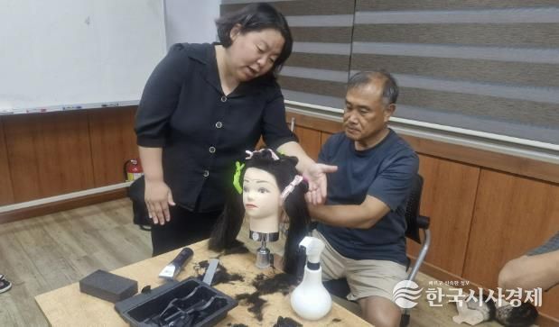 수강생들은 염색·파마 실습은 물론, 대기 시간에 서로 담소를 나누며 웃음꽃을 피워 주민 화합의 장을 만들었다. 특히 이번 과정을 통해 갈고닦은 실력을 지역 사회에 환원하며 경로당 봉사활동으로 마무리해 의미를 더했다.