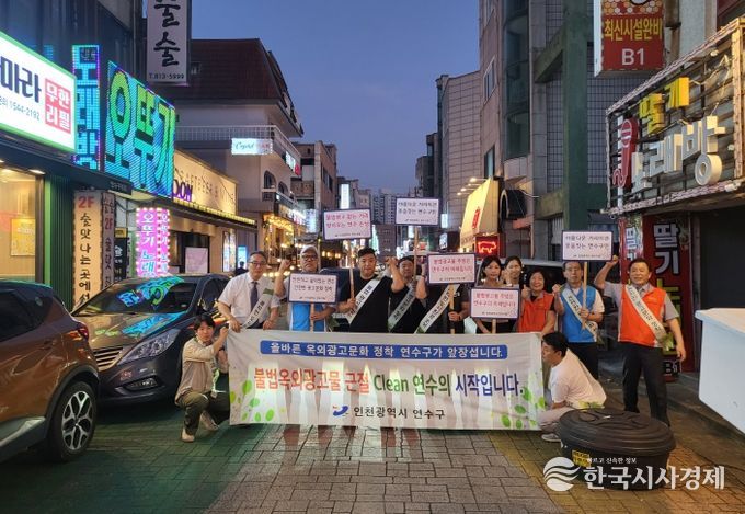 한국시사경제 이정이 기자 | 연수구는 도시미관을 저해하고 구민과 방문객들의 보행 불편을 초래하는 불법 광고물을 정비하기 위해 상가 밀집 지역을 중심으로 불법 광고물 민·관 합동단속을 실시했다.