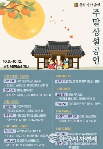 한국시사경제 전남취재본부 | 순천시는 순천 낙안읍성에서 '주말 상설공연'과 '김빈길 장군 창극' 공연을 오는 10월 3일부터 12일까지 선보인다고 밝혔다.
