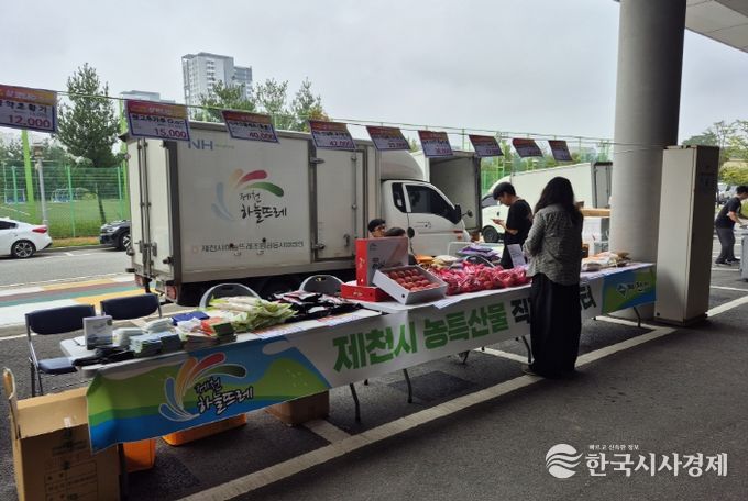 한국시사경제 충북취재본부 | 제천시는 지난 9월 30일 충북 오송단지에서 열린 식품의약품안전처 주관 직거래장터에 지역 농산물 판매업소 ‘하늘뜨레’와 함께 참여해, 오송단지 내 6개 입주기관 직원과 주민 등 2,000여 명을 대상으로 지역 특산품을 판매했다.