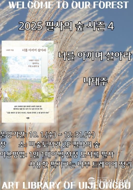한국시사경제 경기북부취재본부 | 의정부미술도서관은 올해 1월부터 운영해 온 시민 참여 독서 프로그램 ‘필사의 숲’ 10월 프로그램을 운영한다.