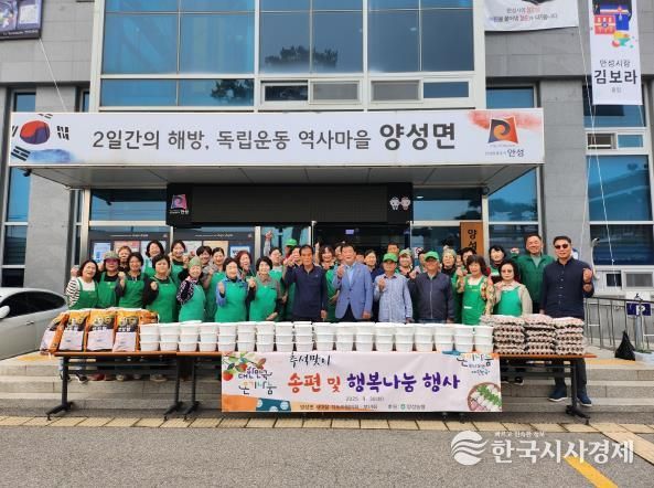 한국시사경제 경기취재본부 | 양성면새마을지도자․부녀회는 9월 30일 양성면 행정복지센터 앞 주차장에서 “추석맞이 송편 행복 나눔” 행사를 진행했다. 이번 행사는 민족 최대 명절인 추석을 맞아 지역 내 취약계층에게 따뜻한 정을 나누고, 모두가 풍성한 한가위를 보낼 수 있도록 돕기 위해 마련됐다.