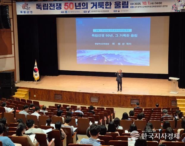 한국시사경제 광주취재본부 | 광주시교육청은 1일 학생교육문화회관 공연장에서 광복 80주년을 맞아 인문학 강연 ‘독립운동 50년의 거룩한 울림’을 진행했다.