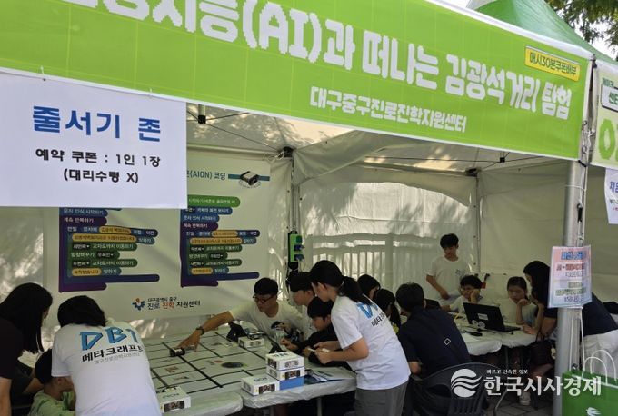 한국시사경제 대구취재본부 | 대구 중구진로진학지원센터(센터장 김남탁)는 대봉1동 창의융합 학생동아리와 함께 지난달 27일부터 이틀간 삼성창조캠퍼스에서 열린 ‘2025 대구메이커페스타’에 참가해 김광석거리 홍보 프로젝트 ‘DB1 메타크래프트 체험부스’를 운영했다.