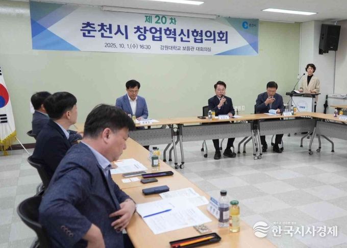 춘천시가 1일 강원대 보듬관 대회의실에서 정재연 강원대 총장, 한림대 최양희 총장을 비롯한 14개 지역내 유관기관 관계자들이 참석한 가운데 제20차 춘천시 창업혁신협의회를 개최했다.