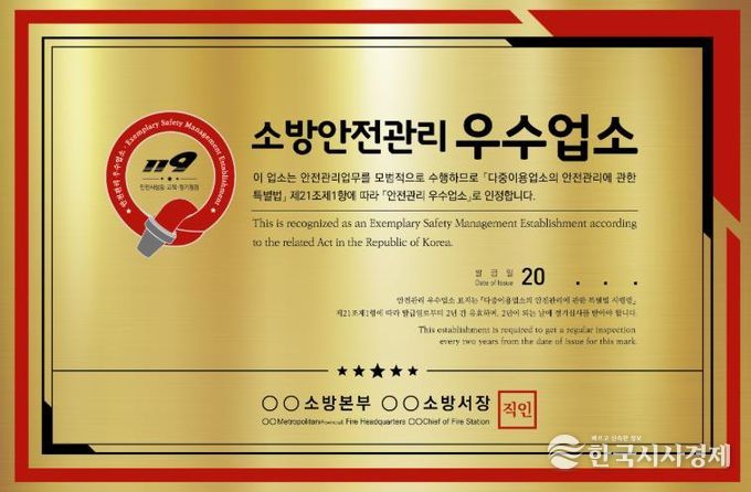 최종 선정된 우수업소에는 표창 수여는 물론, 공표 후 2년간 화재안전조사 및 소방안전교육 면제, 안전관리 우수업소 표지부착, 소방청 인증 안전관리 우수업소(인터넷 검색서비스 정보표출) 등의 혜택이 주어진다.