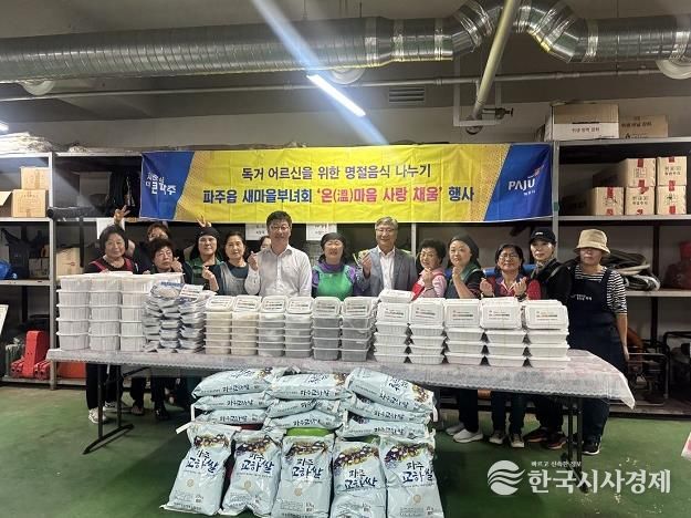 한국시사경제 경기북부취재본부 | 파주시 파주읍 새마을부녀회는 민족 최대의 명절인 추석을 맞아 지난 1일 관내 독거노인을 위한 ‘온(溫)마음 사랑채움’ 행사를 진행했다.