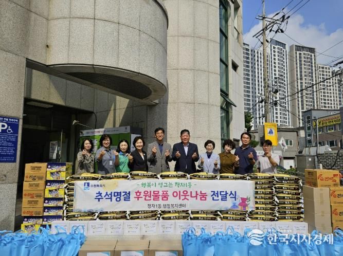 한국시사경제 사회팀 | 수원시 장안구 정자1동은 지난 1일, 추석 명절을 앞두고 관내 단체, 기업, 개인 등에서 기탁한 성금과 물품을 어려운 이웃들에게 전달하는 ‘추석 이웃사랑 나눔 전달식’을 개최했다.