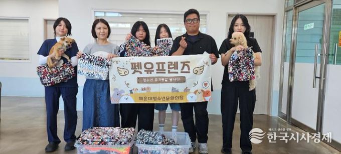 한국시사경제 김숙영 기자 | 해운대청소년문화의집은 지난 27일 해운대구 송정에 위치한 해운대구유기동물입양센터에 유기동물을 위한 양말목 방석을 기부했다.
