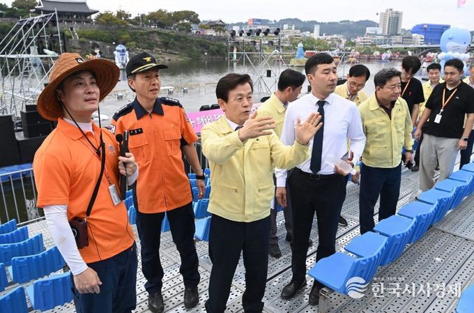 이번 점검은 조규일 진주시장을 비롯해 행정안전부 재난안전점검과, 경상남도 사회재난과, 진주경찰서, 진주소방서 등 관계기관과 축제 주관단체, 진주시 국·소장 등 30여 명이 참여한 가운데 축제장 전반에 대한 안전관리와 운영 준비상황을 집중적으로 살폈다.