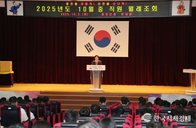 한국시사경제 사회팀 | 옹진군은 지난 2일, 군청 효심관에서 전 직원들이 참석한 가운데 ‘10월 중 월례조회’를 개최하고, 2026년 본예산 편성과 연말 사업 마무리, 가을철 재난 대비 및 추석 연휴 대응 방안 등을 공유했다.