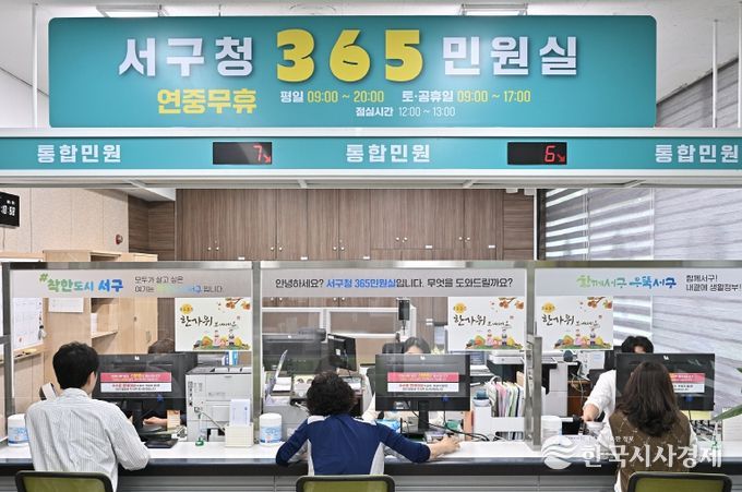 서구는 추석 연휴인 3일부터 9일까지 일주일간 상무지구 롯데마트맥스 1층에 위치한 ‘365민원봉사실’을 오전 9시부터 오후 5시까지 정상 운영한다고 밝혔다.