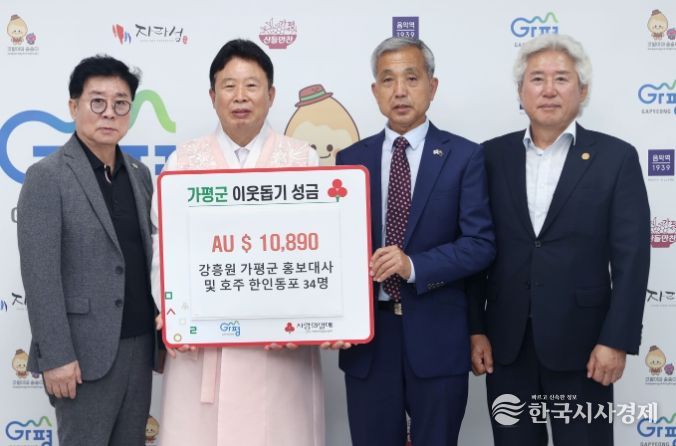 강흥원 홍보대사는 “호주 곳곳에 사는 교민들이 호우 피해 주민들에게 위로와 힘이 되기를 바라는 마음으로 성금을 모았다”며 “이를 계기로 가평군과 호주 교민 사회 간의 우정이 더욱 굳건하게 이어지길 바란다”고 전했다.