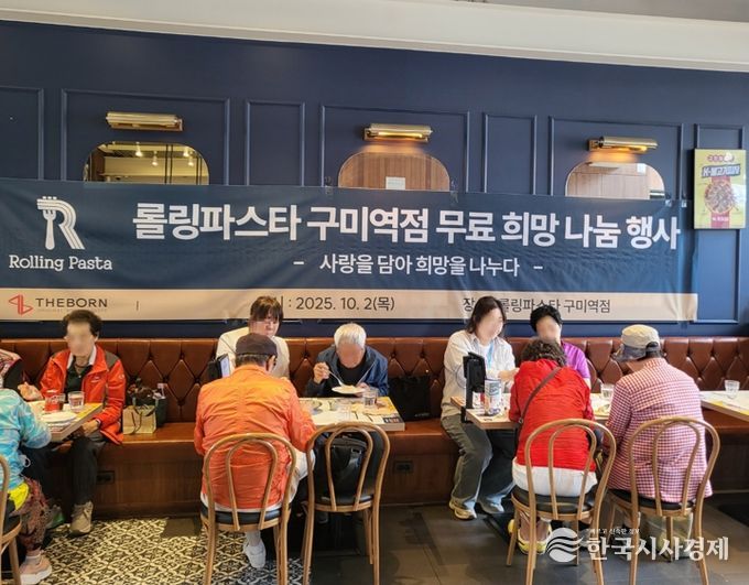 한국시사경제 경북취재본부 | 롤링파스타 구미역점과 료혼구미특별관(대표 김경호)은 2일, 구미지역 아동과 어르신 250여 명을 식당으로 초대해 정성 어린 식사를 대접했다. 이번 행사는 관내 재가노인통합지원센터와 지역아동센터의 협조로 진행됐다.