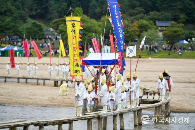 한국시사경제 경북취재본부 | 고즈넉한 무섬마을의 정취와 함께 펼쳐진 ‘2025영주 무섬외나무다리축제’가 10월 5일 전통상여행렬 재연을 끝으로 성대한 막을 내렸다.