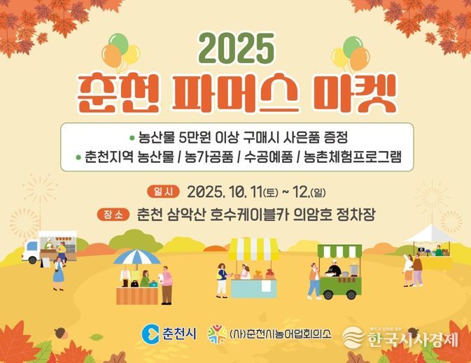 홍미순 춘천시 농업정책과장은 “가을에 어울리는 따뜻한 장터가 될 것”이라며 “농촌과 도시가 어깨를 맞대는 소통의 장을 꾸준히 이어가겠다”고 말했다.