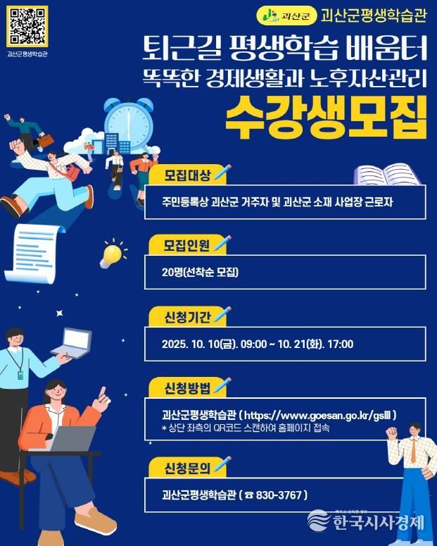 한국시사경제 충북취재본부 | 충북 괴산군은 10일부터 오는 21일까지 ‘2025년 괴산군 평생학습관 퇴근길 평생학습 배움터’ 수강생을 모집한다고 밝혔다.