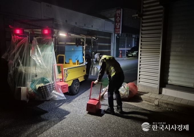 한국시사경제 김태훈 기자 | 금산군은 새벽 시간대 청소를 하는 환경미화원의 쓰레기 수거 작업 시 안전사고 예방을 위해 부착용 조명을 지급했다고 밝혔다.
