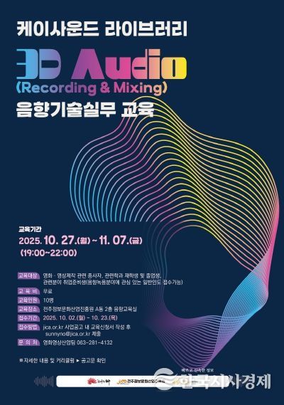 교육은 약 2주간 전주정보문화산업진흥원에서 진행되며, 영화·영상 제작 관계자와 음향 관련 재학생·졸업생, 관련 분야 취업준비생 등 누구나 신청할 수 있다.