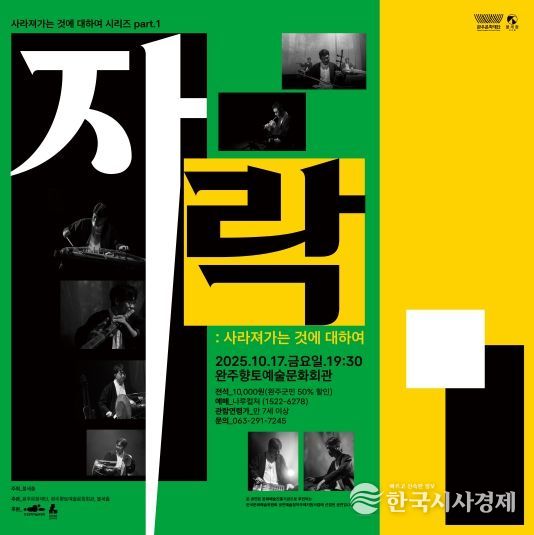 한국시사경제 전북취재본부 | 전북 완주군에 깊어가는 가을밤, 사라져가는 토속 민요의 숨결을 현대적인 감각으로 재조명하고 재해석한 특별한 국악 공연이 펼쳐진다. 완주문화재단은 오는 10월 17일, 완주향토예술문화회관에서 국악앙상블 불세출의 '자락: 사라져가는 것에 대하여' 공연을 개최한다