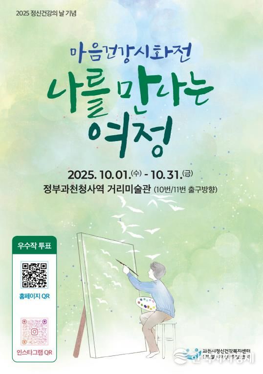 한국시사경제 사회팀 | 과천시정신건강복지센터는 정신건강의 날을 기념하여 10월 한 달간 ‘마음건강 시화전-나를 만나는 여정’을 개최한다고 10일 밝혔다.