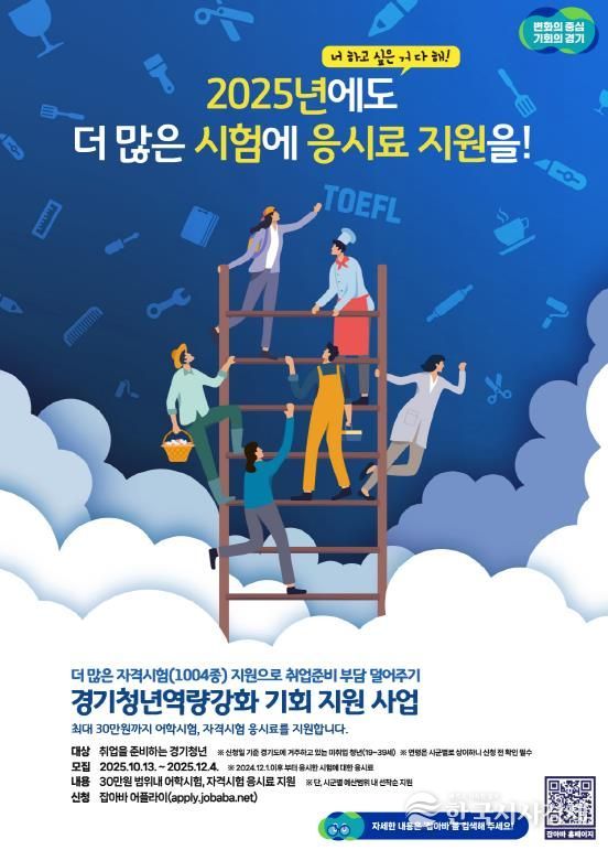 신청은 2025년 10월 13일 오전 9시부터 12월 4일 오후 6시까지 가능하며, 예산 소진 시 조기 마감될 수 있다. 신청은 경기일자리재단 온라인 사이트에서 진행된다.