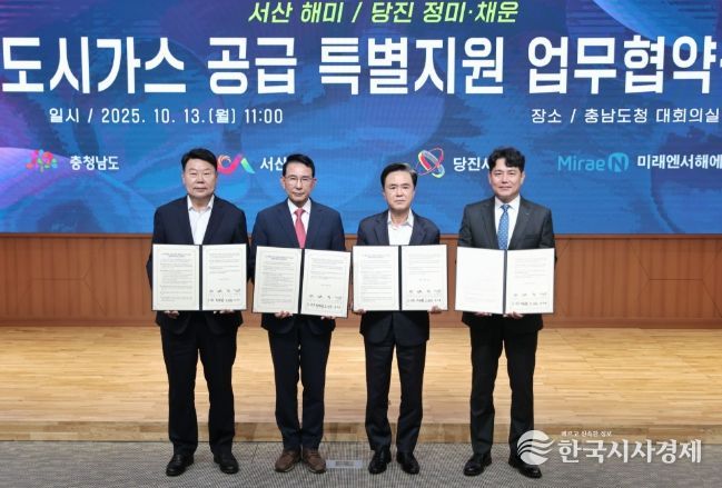 한국시사경제 충남취재본부 | 당진시는 13일 충남도청 대회의실에서 충청남도, 미래앤서해에너지와 함께 도시가스 공급 특별지원 업무협약(MOU)을 체결했다고 밝혔다.