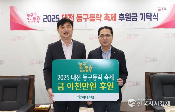 이날 기탁식에는 하나은행 충청영업그룹(부행장 이동열), 대전복합터미널(대표 강봉규), 신화금속(대표 정찬욱) 관계자들이 참석해 동구 대표 축제의 발전과 지역사회 문화 진흥을 위한 뜻을 함께했다.