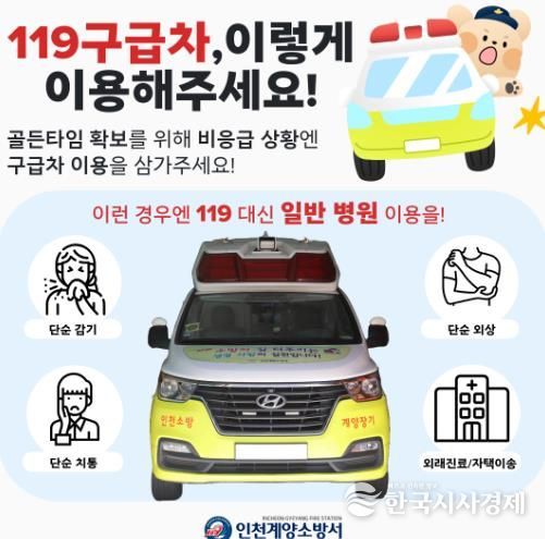 한국시사경제 오영주 기자 | 계양소방서는 응급환자의 골든타임 확보를 위해 비응급환자의 119구급차 이용 자제를 당부한다고 14일 밝혔다.