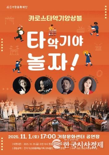 한국시사경제 김숙영 기자 | (재)거창문화재단은 오는 11월 1일 토요일 오후 5시 거창문화센터 공연장에서 카로스 타악기 앙상블과 함께하는'타악기야 놀자!'를 개최한다.
