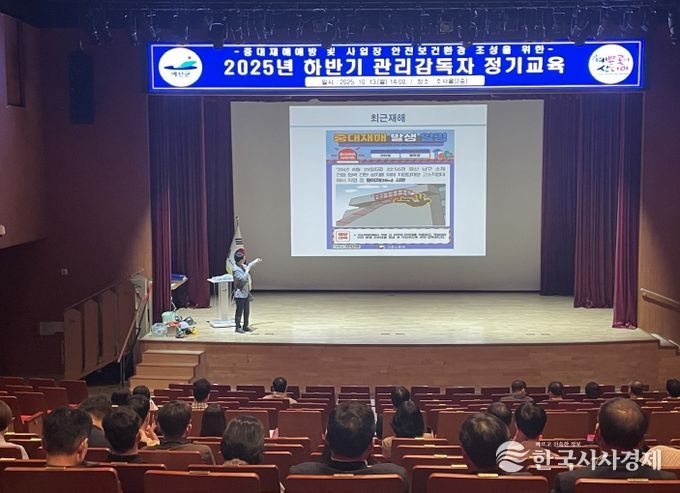한국시사경제 충남취재본부 | 예산군은 지난 13일 군청 추사홀에서 중대재해 예방과 안전한 근로환경 조성을 위해 ‘2025년 하반기 관리감독자 집체교육’을 실시했다고 밝혔다.