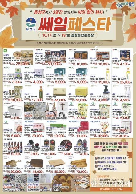 한국시사경제 김태훈 기자 | 음성군은 이달 17일부터 19일까지 음성종합운동장에서 음성군 쎄일페스타를 개최한다고 밝혔다.