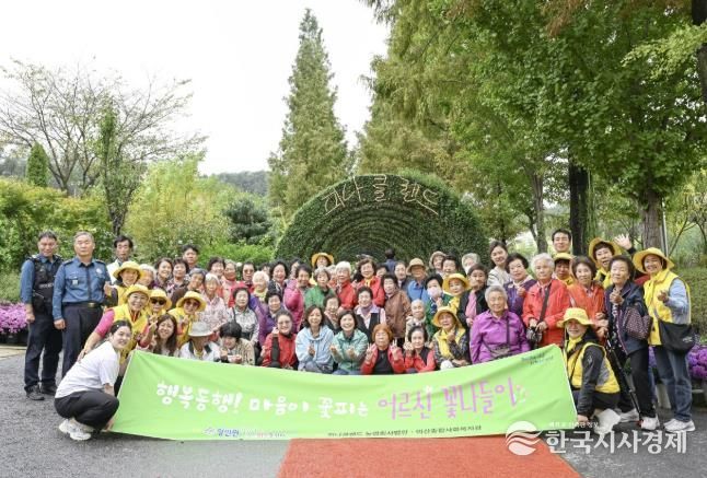 한국시사경제 충남취재본부 | 아산시 영인면 행복키움추진단은 지난 14일 피나클랜드(대표 류일우)의 후원으로 관내 어르신 45명을 모시고 ‘오천만송이 국화 꽃나들이’ 행사를 실시했다.