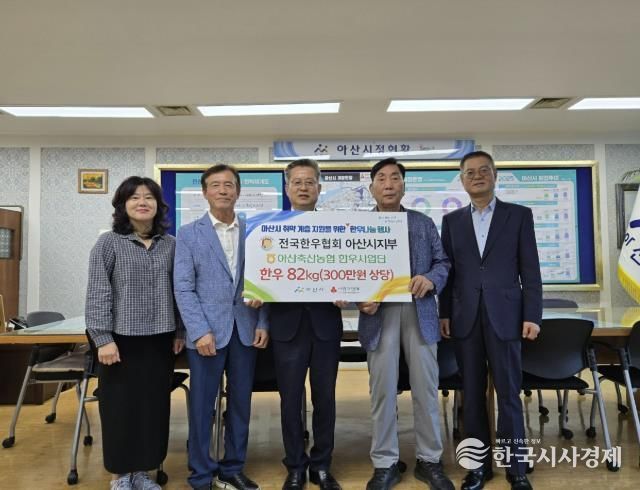 한국시사경제 충남취재본부 | 아산시는 (사)전국한우협회 아산시지부가 지난 14일, 관내 사회복지시설을 지원하기 위해 한우 82kg(약 300만 원 상당)을 후원했다고 밝혔다.