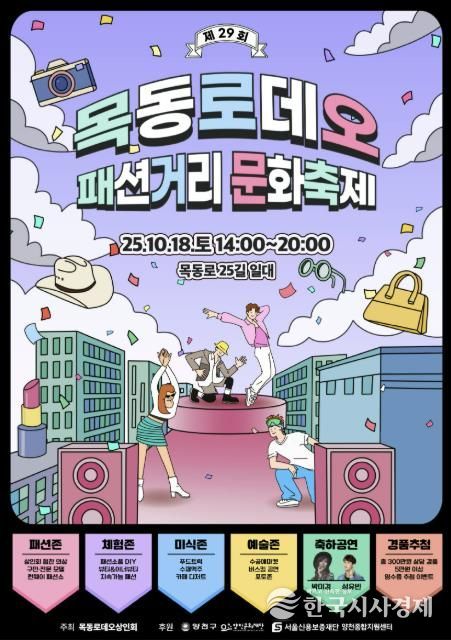 ‘패션존’에서는 이번 축제의 하이라이트인 목동로데오 상점가 의류협찬으로 진행되는 야외 런웨이 패션쇼가 열린다. 구민 모델과 전문 모델이 함께 무대에 올라 패션 트렌드를 선보일 예정이며, 유가영·성유빈·박미경 등 초청가수 공연도 이어져 흥겨운 분위기를 더한다.