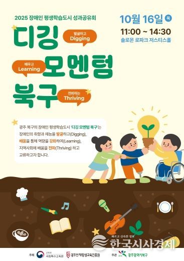 한국시사경제 문화팀 | 광주시 북구가 오는 16일 솔로몬파크 저스티스홀에서 2025년 장애인 평생학습도시 운영 성과공유회를 개최한다고 15일 밝혔다.