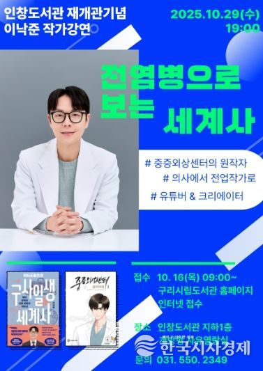 특히 작가초청 강연에는 『중증외상센터 : 골든아워』의 원작자인 이낙준 작가가 참여한다. 행사는 10월 29일(화) 저녁 7시, 새롭게 단장한 지하 1층 북카페형 개방 공간에서 진행된다.
