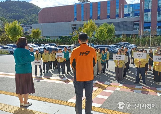 한국시사경제 대전취재본부 | 대전동부교육지원청은 10월 15일 전 직원이 참여한 가운데 대전서부소방서 문화119안전센터와 연계해 합동 소방훈련을 실시했다고 밝혔다.