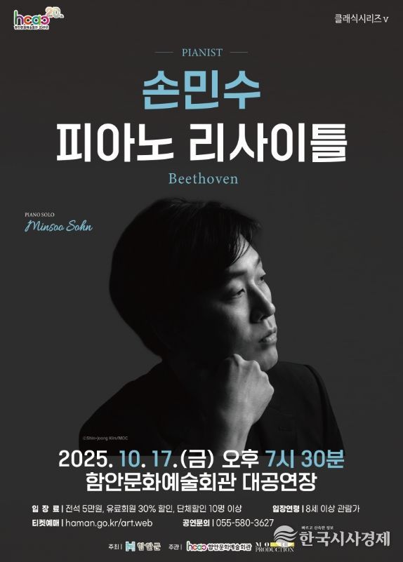 한국시사경제 김숙영 기자 | 함안군은 깊은 음악성을 지닌 피아니스트 손민수가 오는 10월 17일 함안문화예술회관 대공연장에서 열린다고 밝혔다.