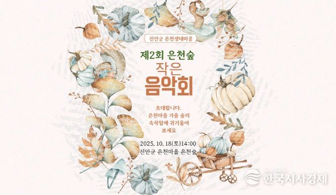 한국시사경제 전북취재본부 | 진안군은 오는 18일 오후 2시~4시까지 은천생태마을 숲에서 ‘두 번째 은천숲 작은 음악회’가 열린다고 밝혔다.
