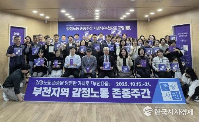 한국시사경제 경기취재본부 | 부천시 일쉼지원센터는 지난 14일, 감정노동 존중 주간 부천다움 포럼과 기념식을 성공적으로 개최했다. 이번 행사는 ‘감정노동자 보호법’(산업안전보건법 제41조) 시행 7주년을 맞아, 감정노동 존중을 당연한 가치로 확산하기 위해 부천시 일쉼지원센터와 부천상공회의소, 한국노총 부천김포지역지부가 공동으로 추진했다.