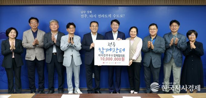 바이전주우수업체협의회(회장 전상문)는 16일 전주시장실을 방문해 ‘전주함께장터’ 기부금 1000만 원을 전달했다.