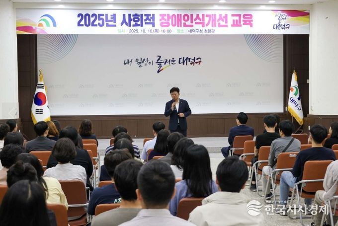 한국시사경제 대전취재본부 | 대전 대덕구는 16일 구청 청렴관에서 공직자 100여 명이 참석한 가운데 ‘사회적 장애 인식개선 교육’을 진행했다고 밝혔다.