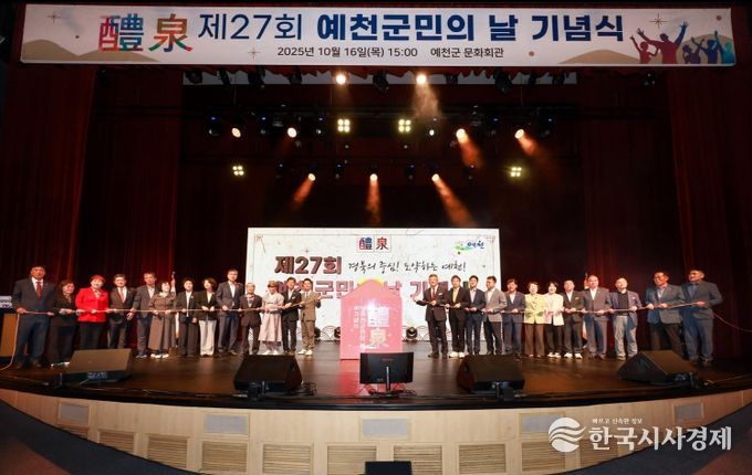 한국시사경제 노승선 기자 | 예천군은 16일 오후 3시, 예천군문화회관에서 ‘제27회 예천군민의 날 기념식’ 을 성황리에 개최했다. 이번 행사는 기관·단체장과 군민 등 500여 명이 참석한 가운데, 군민의 자긍심을 높이고 군민 화합을 도모하는 뜻깊은 자리로 마련됐다.