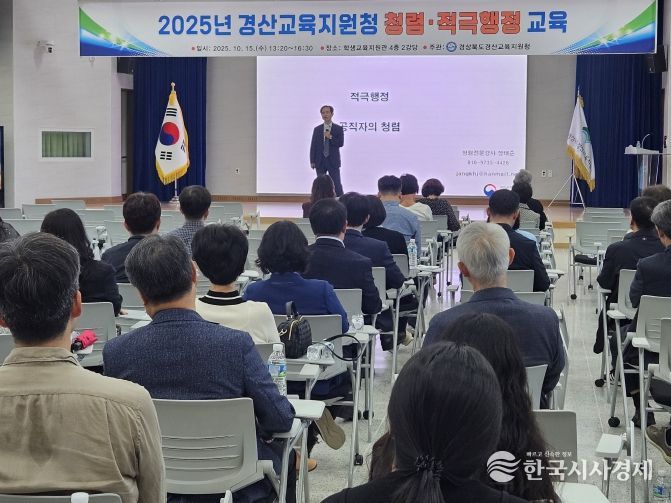 한국시사경제 문화팀 | 경산교육지원청은 10월 15일 13시 10분부터 경산교육지원청 학생교육지원관 2강당에서 청렴·적극행정 교육을 실시했다.