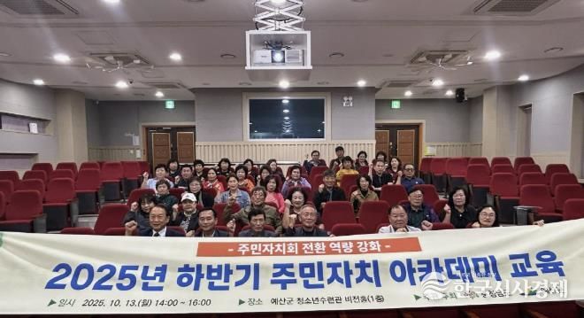 한국시사경제 충남취재본부 | 예산군은 예산군청소년수련관 비전홀에서 주민자치회 미전환 읍면 주민자치위원 50여명을 대상으로 ‘2025년 하반기 주민자치 아카데미 집합교육’을 진행했다고 17일 밝혔다.