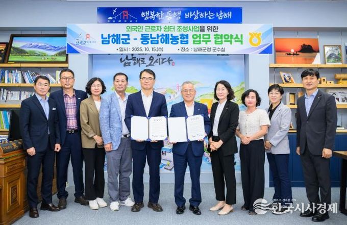 한국시사경제 경남취재본부 | 남해군은 15일 동남해농협이 미조 지역에서 추진하고 있는 ‘외국인 근로자 쉼터 조성사업’에 적극 협력하기로 하고 이와 관련한 업무협약을 체결했다.