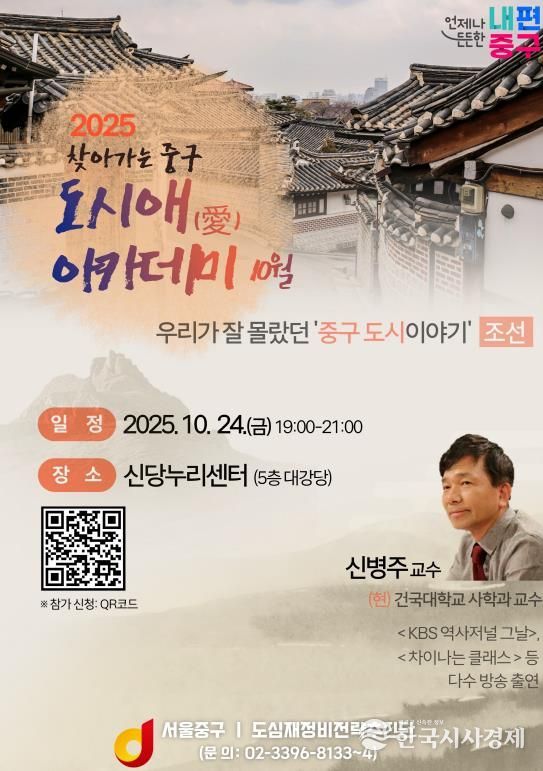 한국시사경제 노승선 기자 | 서울 중구가 오는 24일 저녁 7시 신당누리센터 5층 대강당에서 세 번째 '찾아가는 중구 도시애(愛) 아카데미'를 연다.