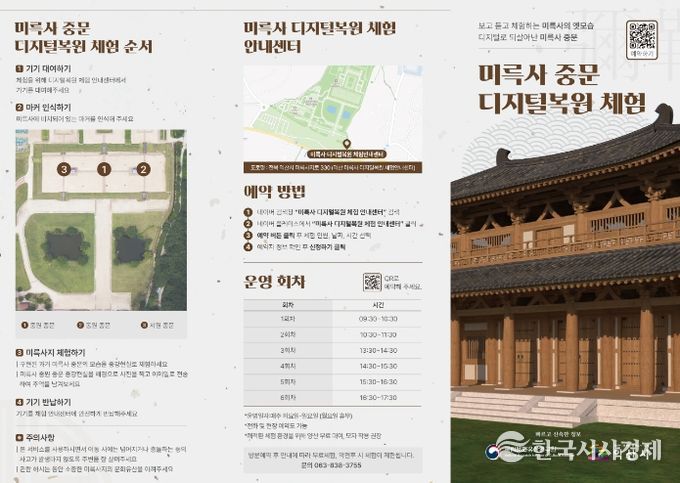 미륵사 중문 디지털 복원 체험은 매주 화요일부터 일요일까지 1일 6회 무료로 진행되며, 회차당 30명씩 참여할 수 있다.