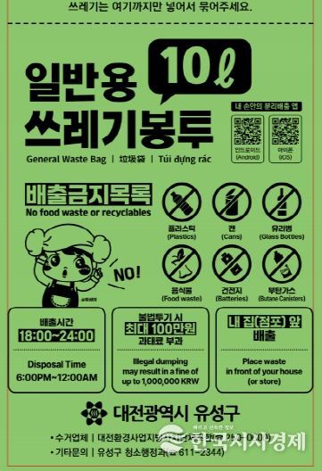 한국시사경제 대전취재본부 | 대전 유성구는 주민의 분리배출 참여를 높이고 깨끗한 도시 이미지 조성을 위해 새롭게 디자인한 종량제봉투를 공급한다고 17일 밝혔다.